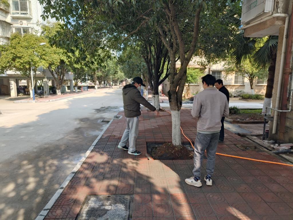 2023年1月3日基建处联合后勤管理处就南家属区雨水排水和主干道种植的树进行现场研究,初步完成部分雨篦子的设置及树木现状的观察。确定了主干道的部分树池需要清理和有虫害的树木需要救治的情况。后期由后勤管理处对有虫害的树木进行杀虫处理。