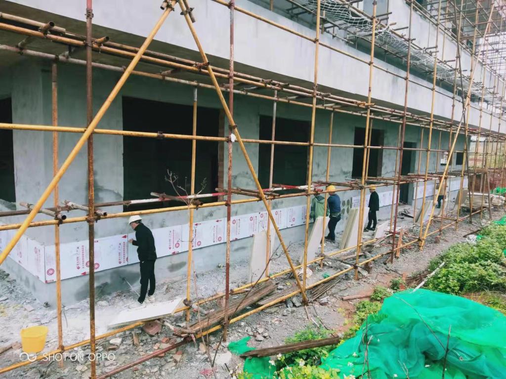 实训中心4#楼外墙保温板开始铺贴