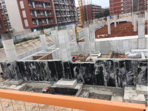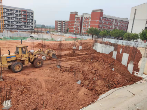 新校区扩建项目综合体育馆工程2021年11月份形象进度:完成网球馆外墙防水施工、A、B基础回填施工、中间区域基础插钎施工。