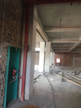 新校区扩建项目图书馆及学术报告厅工程2021年09月份形象进度:外架拆除完成100%,外墙抹灰完成100%,消防管道安装80%,喷淋管道安装30%,学术报告厅主体结构完成100%。