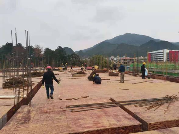 实训中心1`4号楼4月份进度:实训中心 2#楼、3#楼完成屋面钢筋的绑扎,实训中心1#楼完成一层地坪土方回填,实训中心4#楼完成底层地框梁的浇筑。