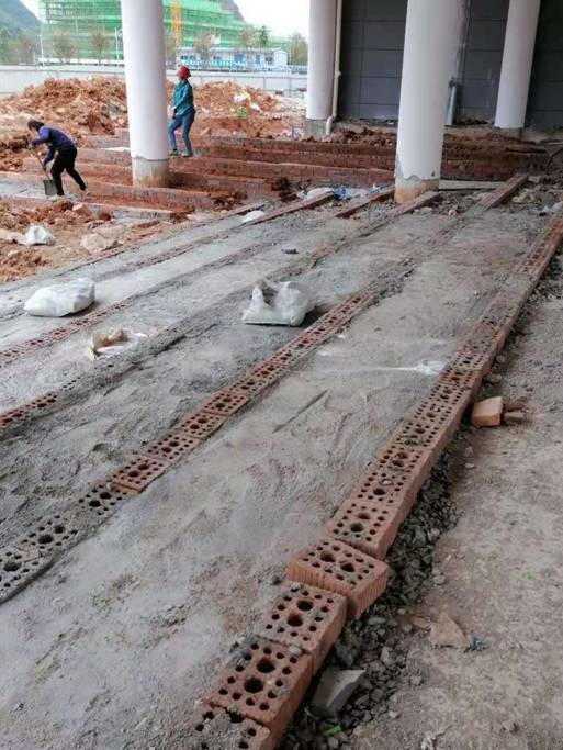 实训中心组团连廊处亲水平台踏步铺设