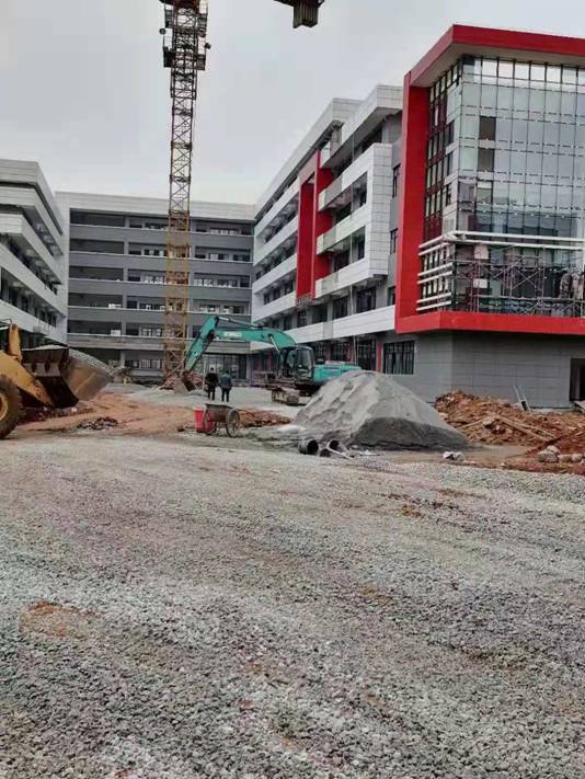 实训中心组团2#楼内庭院开始铺设碎石垫层