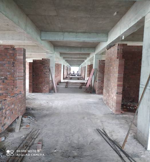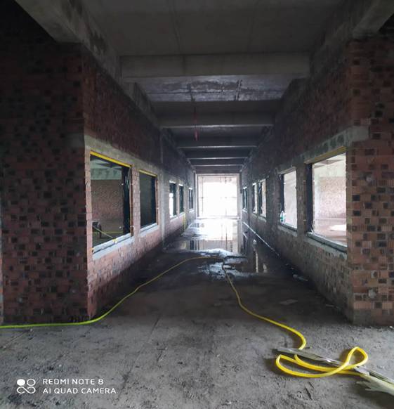 PA官方网站扩建项目实训中心1#、2#楼6月份主要完成的工作有:1#楼完成完成3~5层墙体砌筑。2#楼完成4~6层墙面抹灰,铝合金窗框安装完成80%,教室的电线管铺设完成70%。