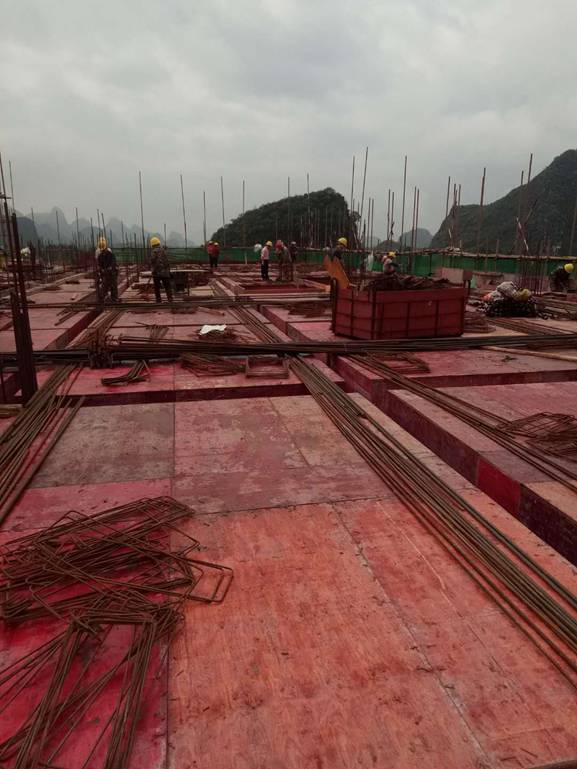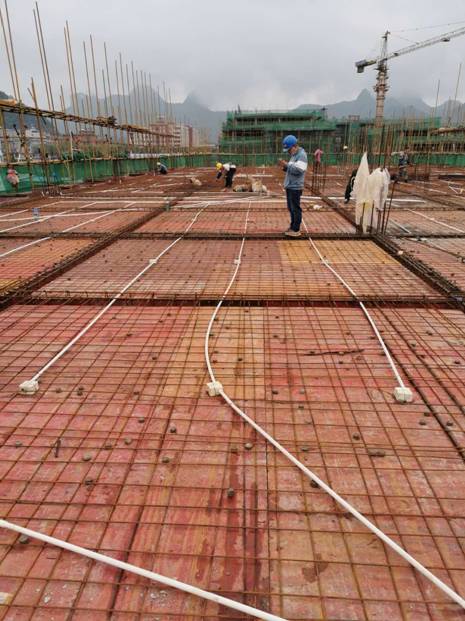 工人正在进行实训中心1#楼B区四层楼板钢筋绑扎