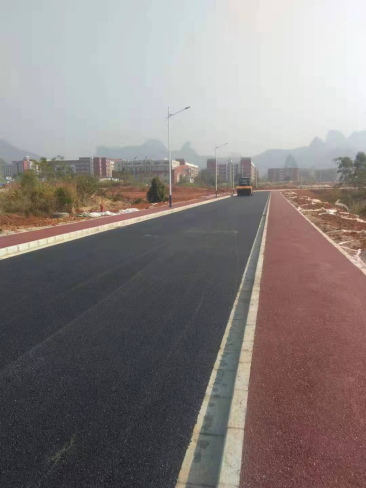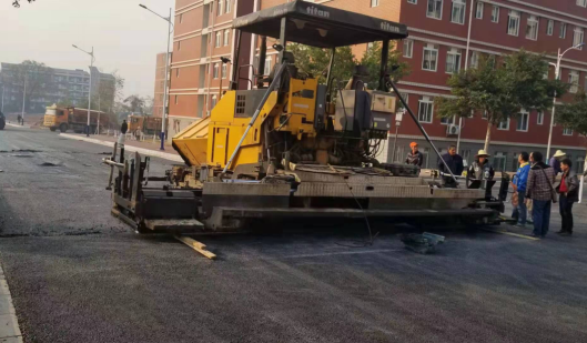 新校区校园道路工程12月份形象进度:道路面层沥青混凝土施工、人行彩色沥青混凝土道施工;B、C标段行道树施工。