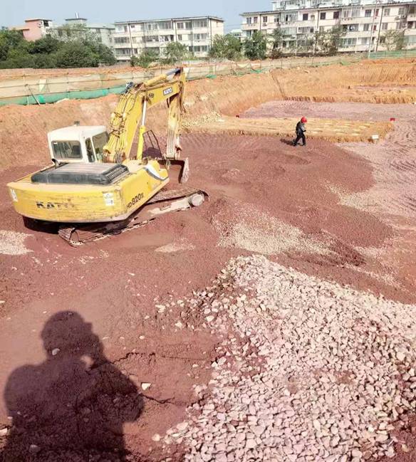 实训中心1#楼西侧正按设计要求进行级配碎石换填(地基处理)