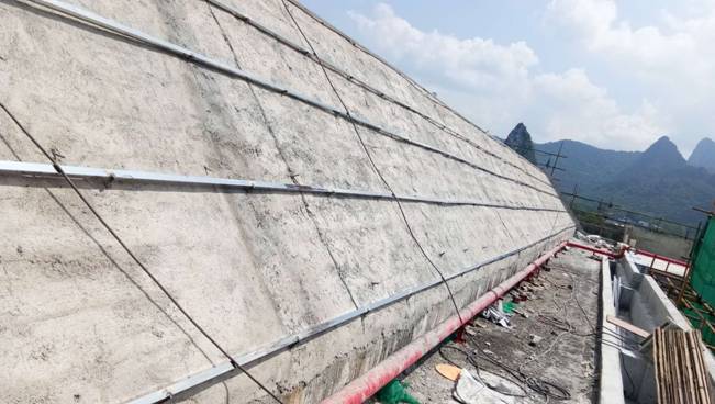 图一 工人正在进行6#楼出屋面楼梯的外墙贴砖