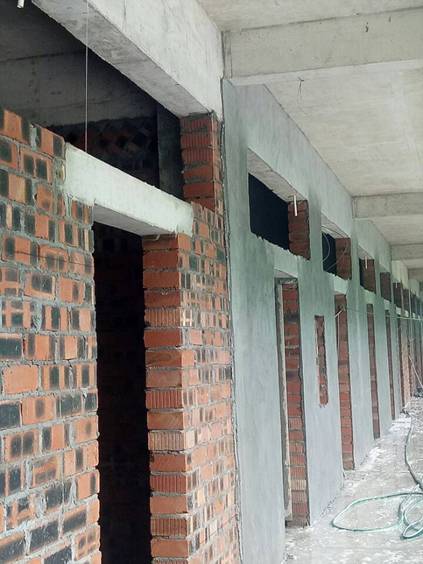 PA官方网站PA官方网站学生公寓6#楼7月份主要完成所有工段5~6层砖墙的砌筑、以及所有工段1~4层砖墙的抹灰。