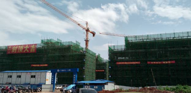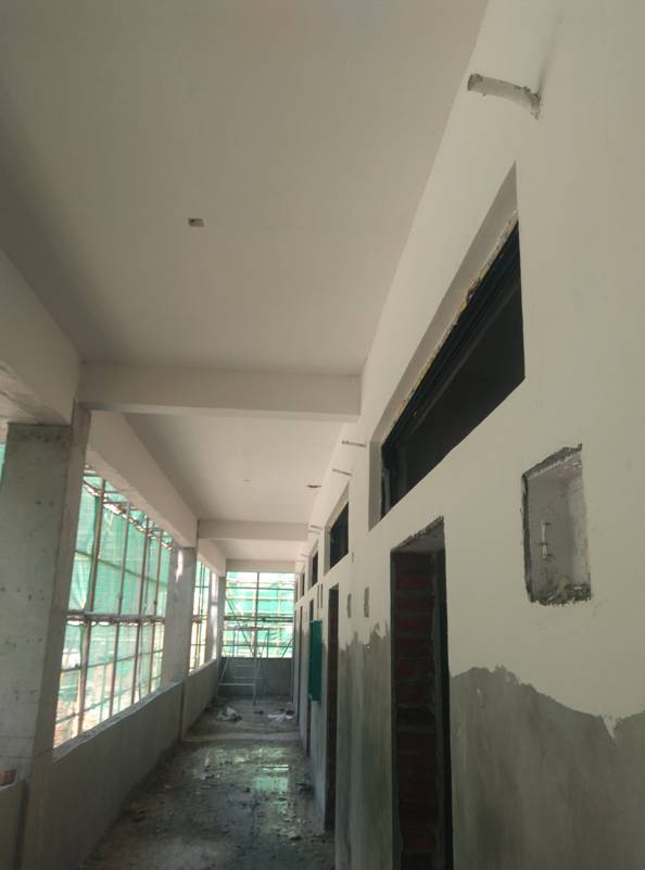 PA官方网站PA官方网站学生公寓5#楼5月份主要完成了主体封顶、四层~六层的墙体砌筑,一层~三层的内墙抹灰和铝合金窗框的安装。
