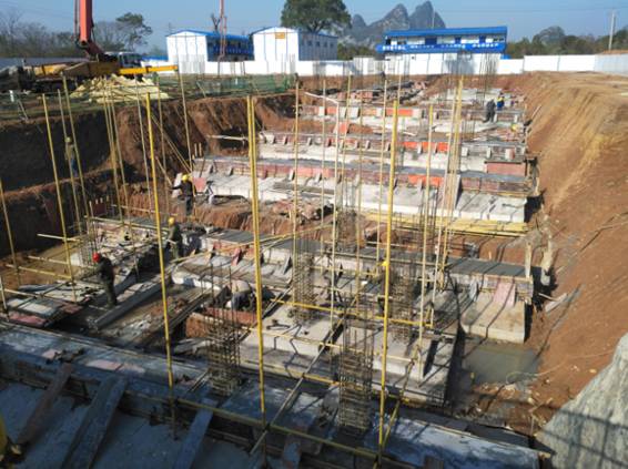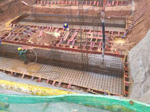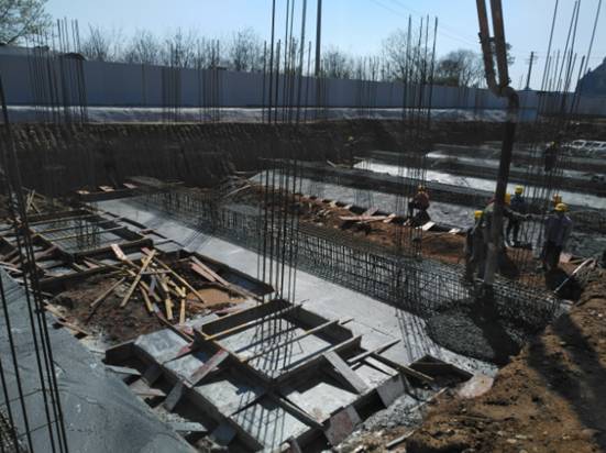 图三:工人正在进行6#楼东南区域条形基础的基础梁浇筑