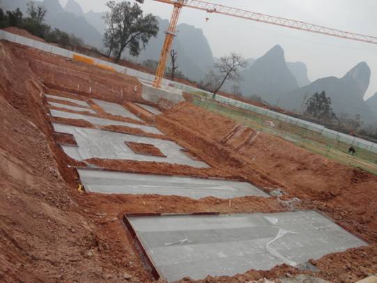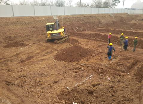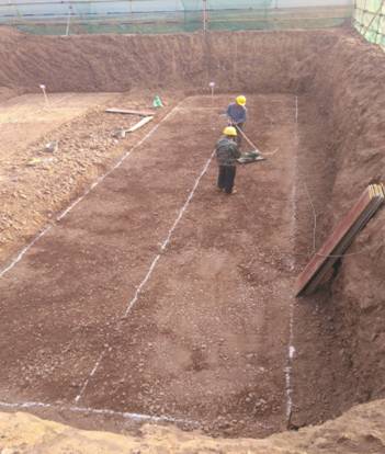 图一:工人正在清理地基表面浮土以备相关单位进行验槽