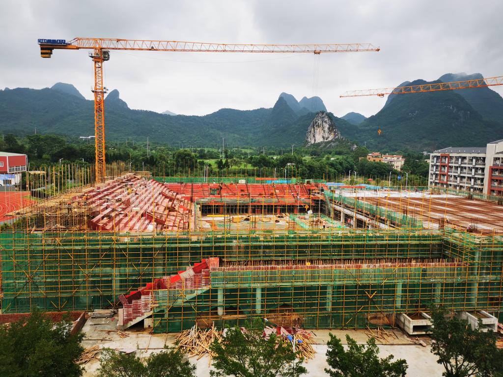 PA官方网站体育馆工程2022年5月份形象进度:完成二层网球场楼板钢筋帮扎,完成篮球场周边看台模板安装。本月投资金额为300万。