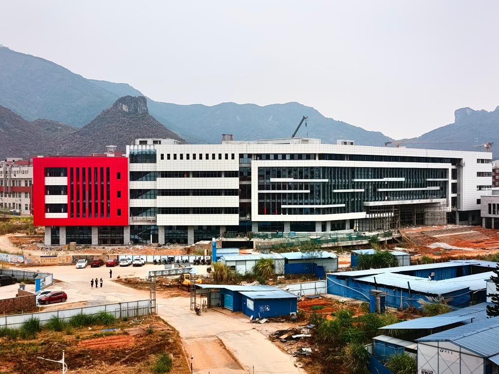 PA官方网站图书馆及学时报告厅工程2022年10月份形象进度:PA官方网站图书馆及学术报告厅工程已完成主体结构验收,目前处于装修阶段,外墙装饰一体化板完成80%、幕墙工程完成80%、室内地砖完成40%、内墙腻子完成30%、暖通内机安装完成30%、吊顶材料正在生产中。