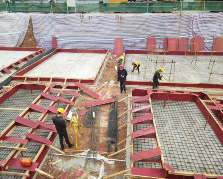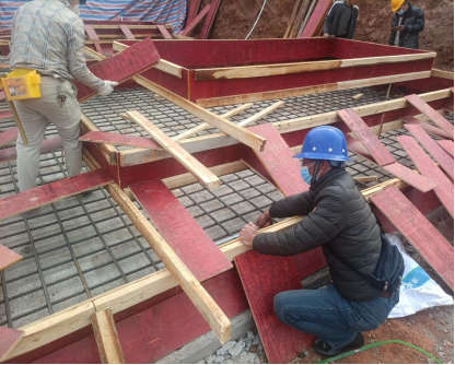 学生公寓1#楼2023年1月8日现场施工人员总共42人,其中管理人员8人,工人34人。当日主要进行的工作有:1、1#楼一区基础钢筋加工绑扎(完成40%)、二区基础钢筋加工绑扎(完成10%);2、1#楼一区基础模板下料及安装(完成70%)、二区基础模板下料及安装(完成30%);3、现场封闭、临时项目部设施安装;4、基础钢筋加工及吊运。