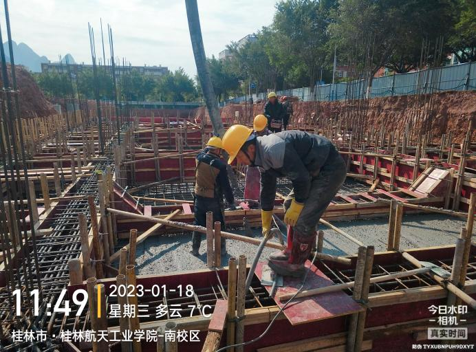 当日主要进行的工作有:1、AF-W轴交1-7筏板基础砼浇筑。2、AG轴交15-17轴承台台阶砼浇筑。3、AH-AG轴交8-10轴基础柱砼浇筑。4、U-S轴交12-14轴基础柱砼浇筑。5、AF轴交13轴基础柱砼浇筑。6、施工2区土方回填。7、临时设施大门及电线安装。