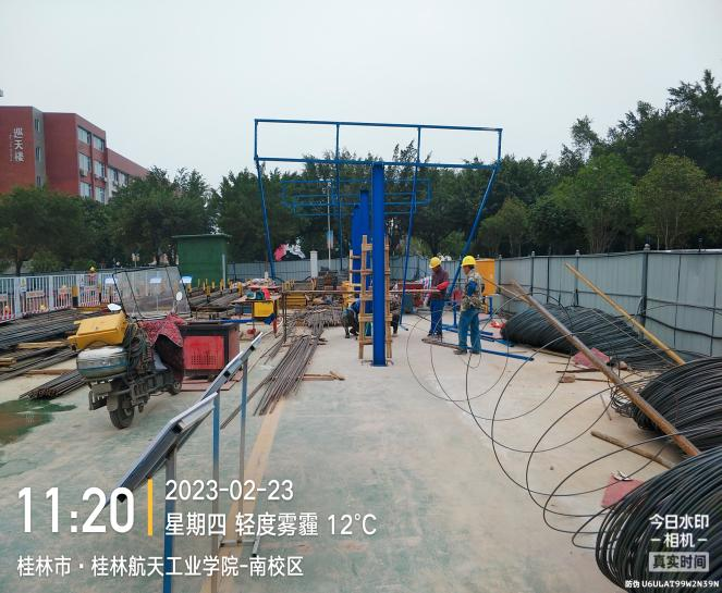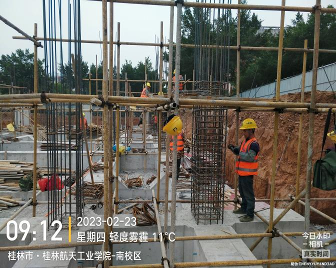 当日主要进行的工作有:1、施工3区轴线及基础柱垂直度复查。2、施工1区地梁、筏板基础柱模板安装。3、筏板基础柱钢筋绑扎。4、临边、临时设施安装、刷漆、焊接。5、钢筋棚安装。6、施工3区A-F轴交1-18轴基础承台、筏板基础验收。