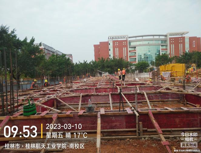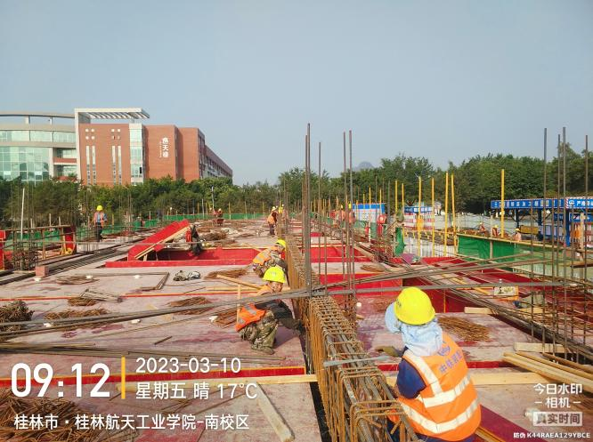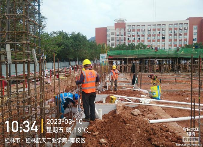 主要工作面:1、1区二层梁板钢筋绑扎。2、1区外架搭设。3、2区柱钢筋绑扎。4、2区内架搭设。5、3区地梁模板安装。6、筏板AF-W交1-7轴管道安装及地面整平。7、筏板W-M交1-7轴土方回填。8、钢筋加工。