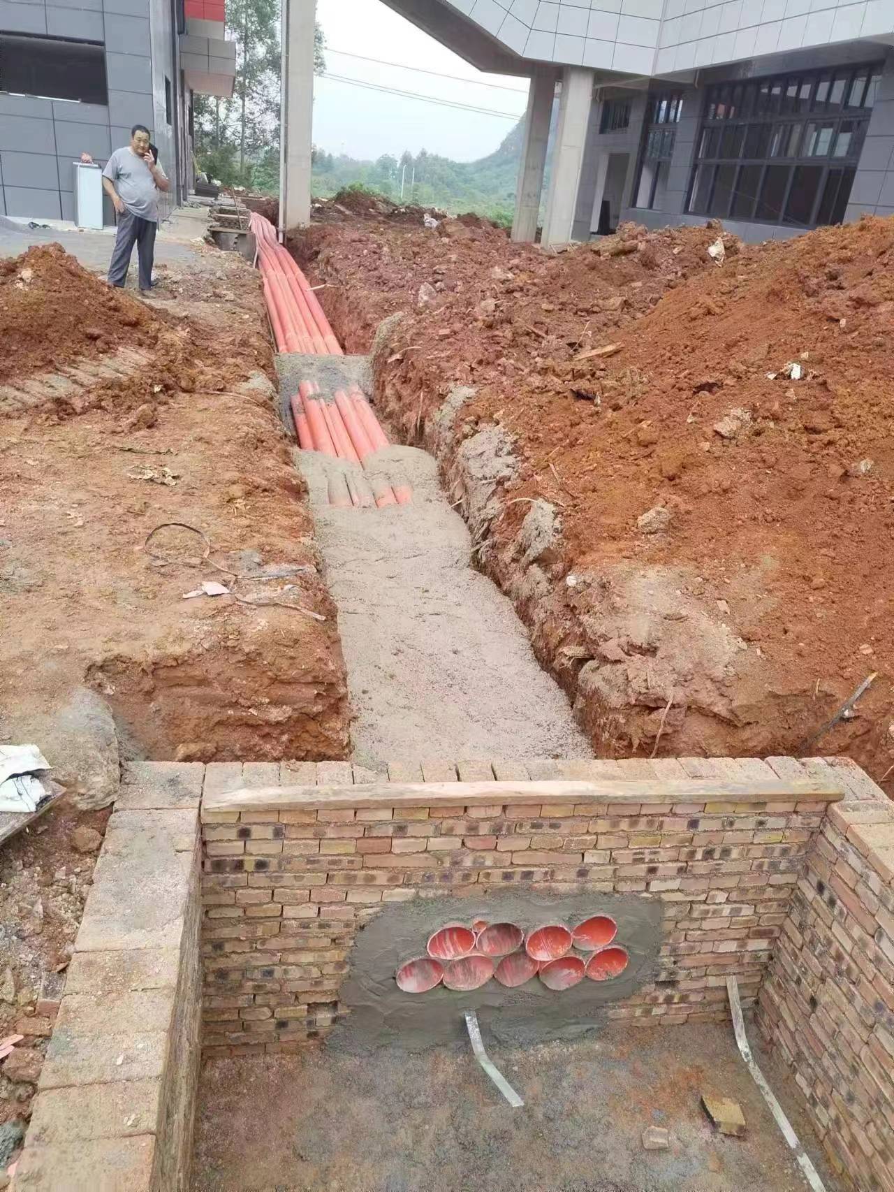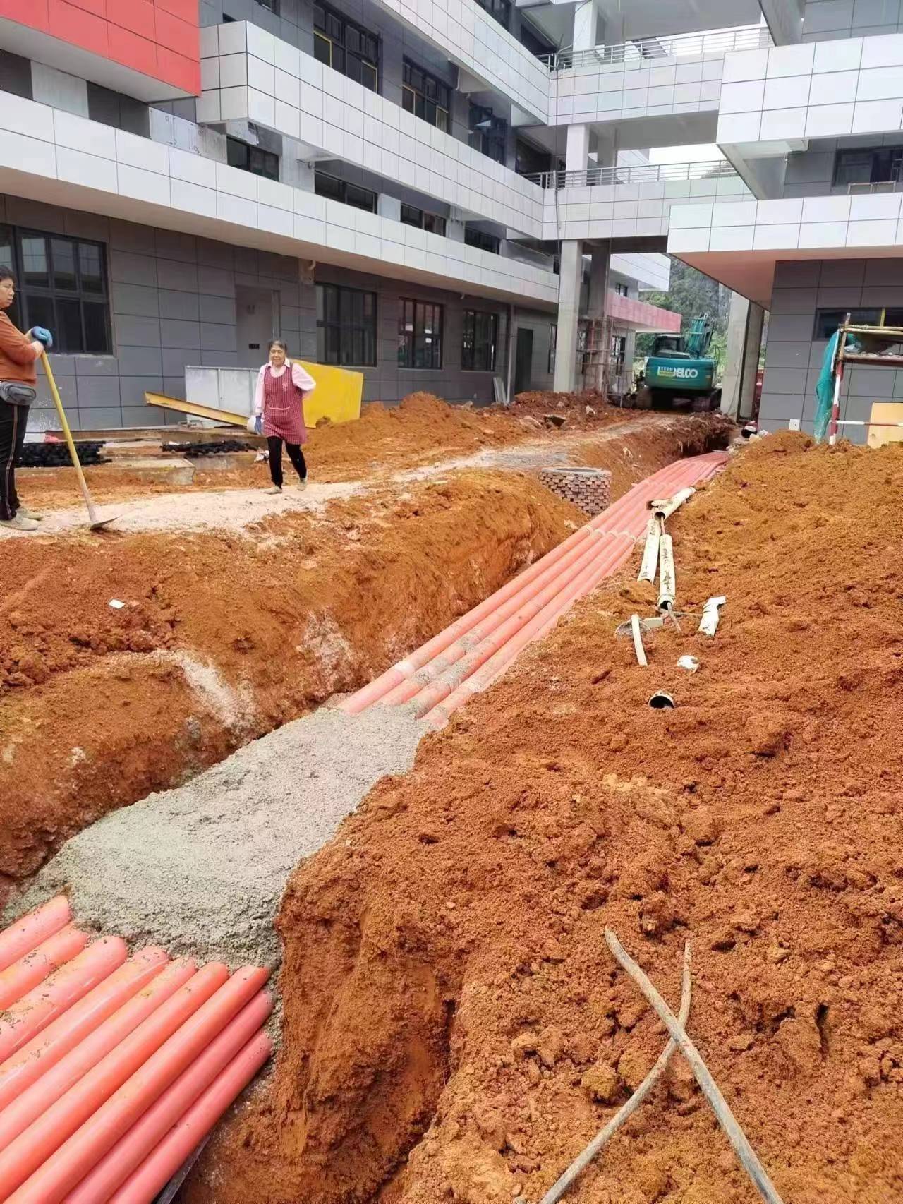 实训中心1-4#楼5月份形象进度:主体工程完成95%,室外管线工程完成强弱电管的铺设完成60%,雨污水管的铺设完成70%。