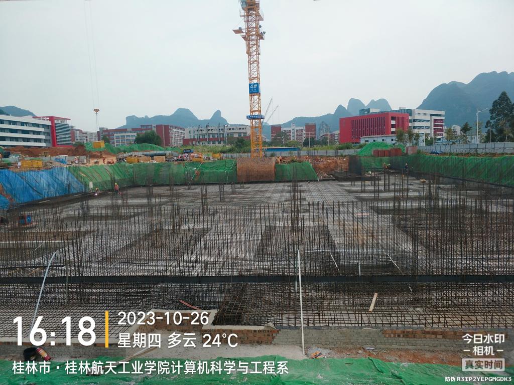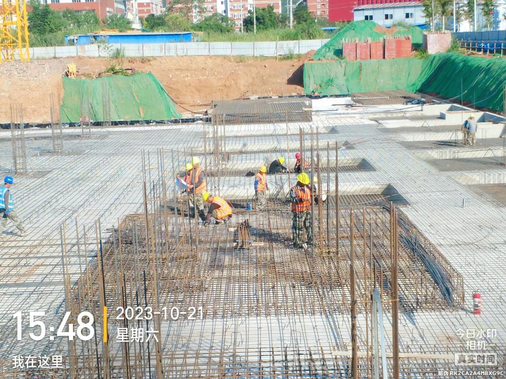科技活动中心2023年10月份主要完成了如下工作内容:主要完成地下室底板防水、基础垫层施工、地下室底板和挡土墙以及基础钢筋绑扎、CFG桩区域地基验槽以及垫层浇筑等施工内容。