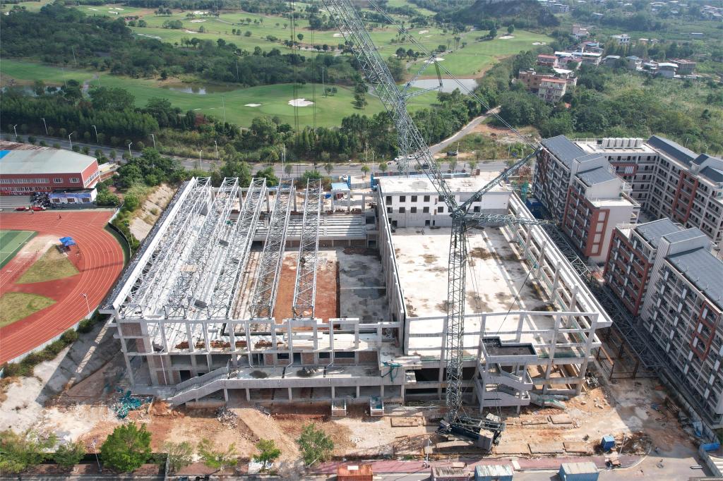 PA官方网站综合体育馆工程2023年10月份形象进度:完成第三、第四、第五榀大型钢梁安装,正在进行第六榀梁的焊接。