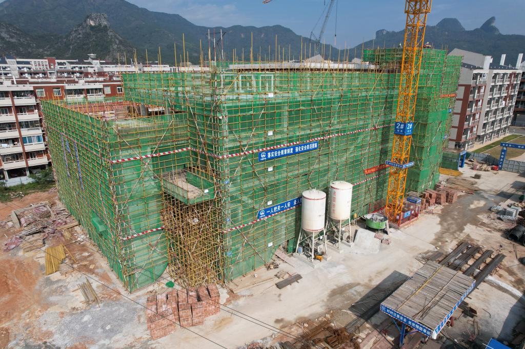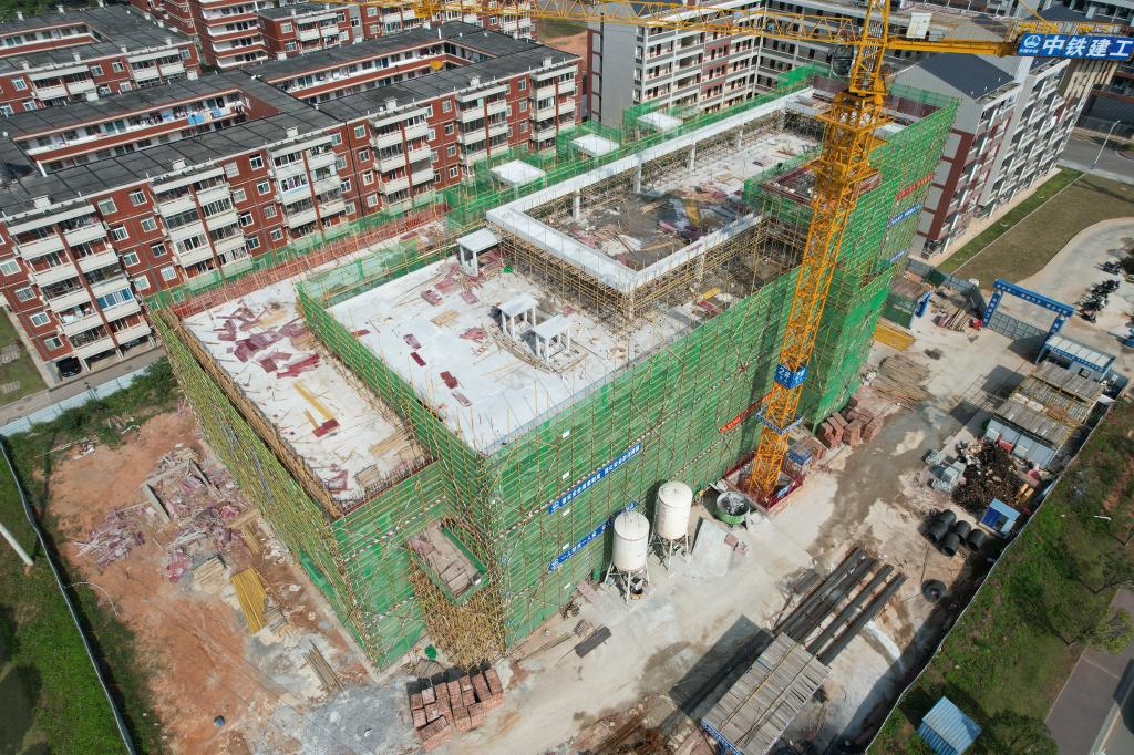 食堂2023年11月份主要完成了如下工作内容:完成主体结构封顶、砖墙砌筑完成30%。