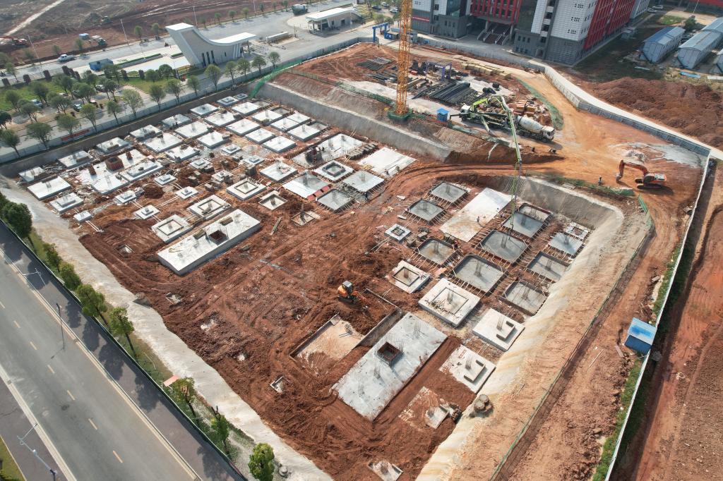 行政办公及院系教师办公楼11月份形象进度:主要完成土方挖运、基础浇筑完成90%、基础回填完成20%。