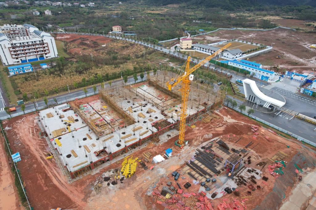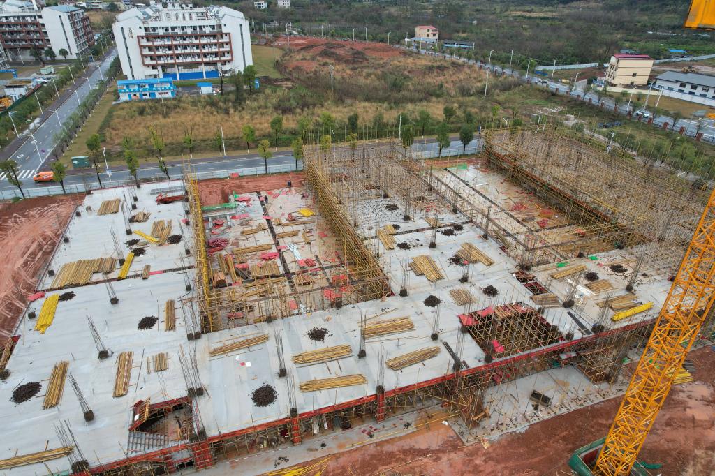行政办公及院系教师办公楼2月份形象进度:完成基础回填以及地上一层顶板浇筑工作。