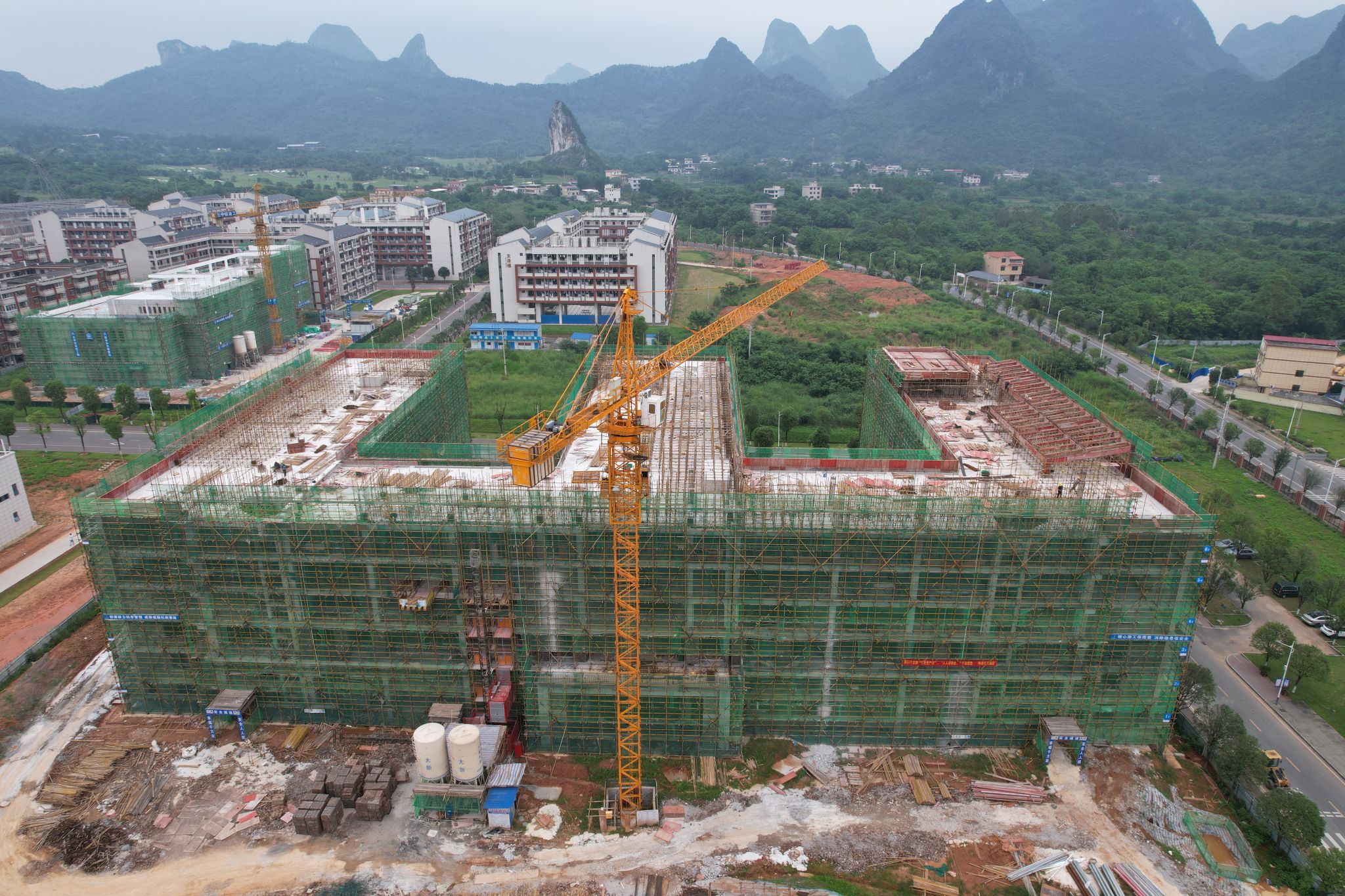 行政办公及院系教师办公楼5月份形象进度:完成主体封顶,一层砖墙砌筑完成,二层砌筑50%。