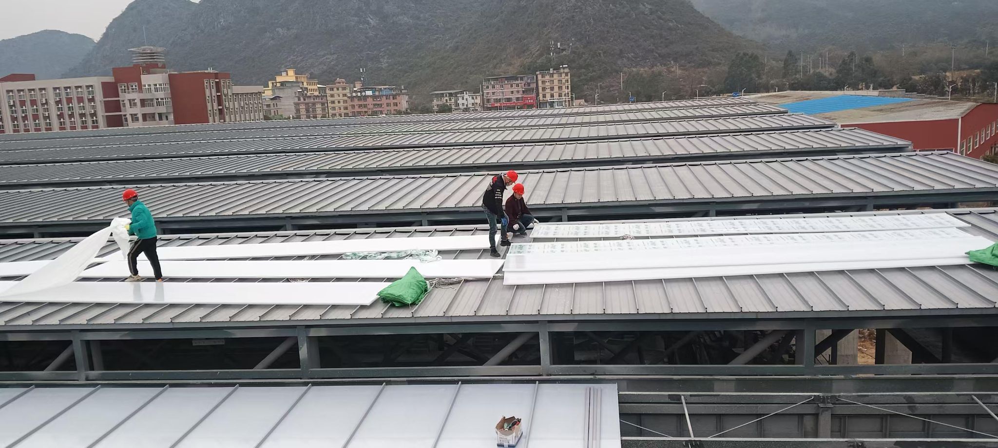 PA官方网站综合体育馆工程2025年1月份施工内容包括屋面阳光板、室内吸音板龙骨、部分暖通管道安装及包封。