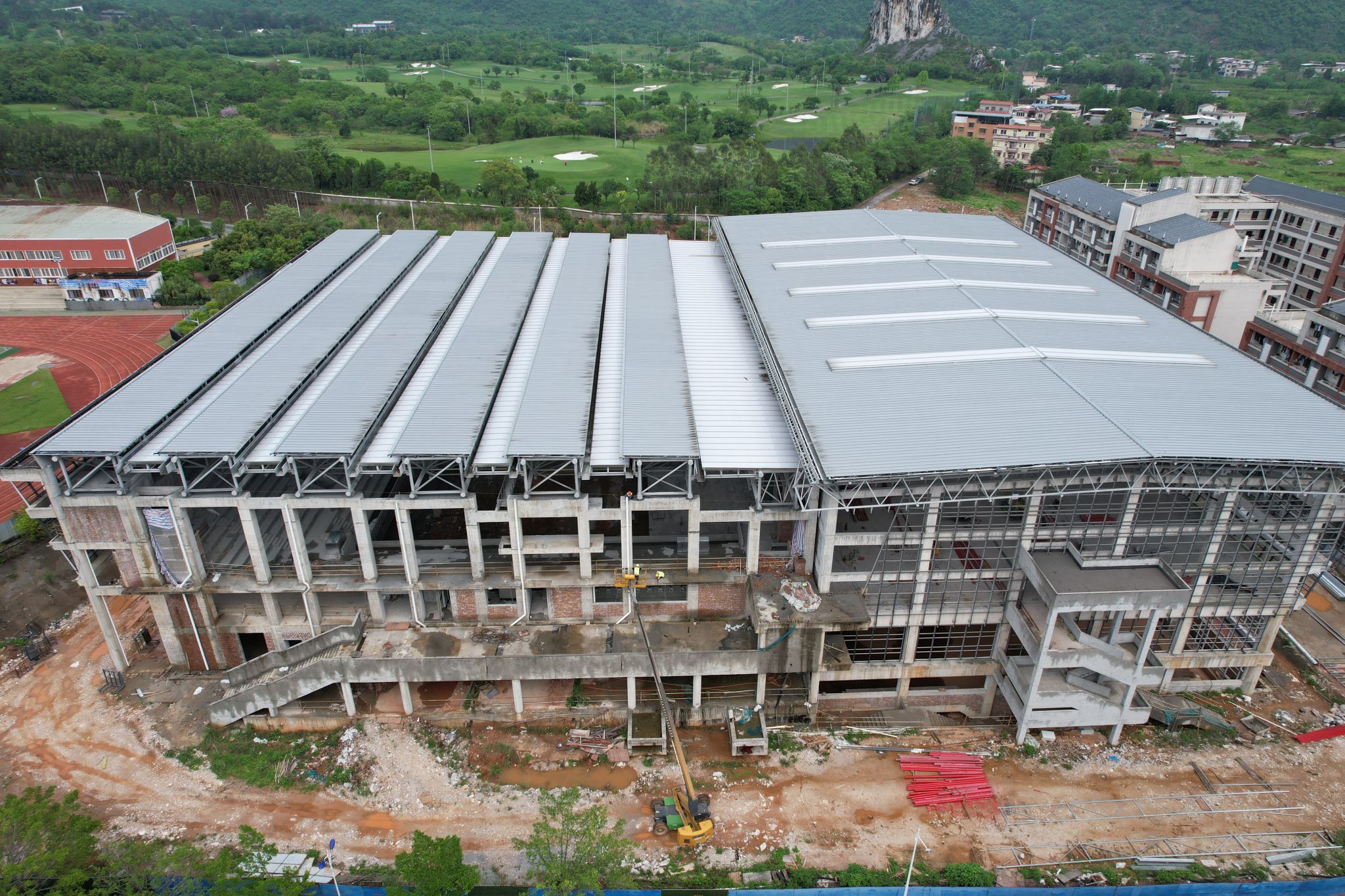 PA官方网站综合体育馆工程2025年4月份形象进度:施工内容消防管道安装、顶棚批白、卫生间贴砖、空调设备排产、幕墙玻璃安装。