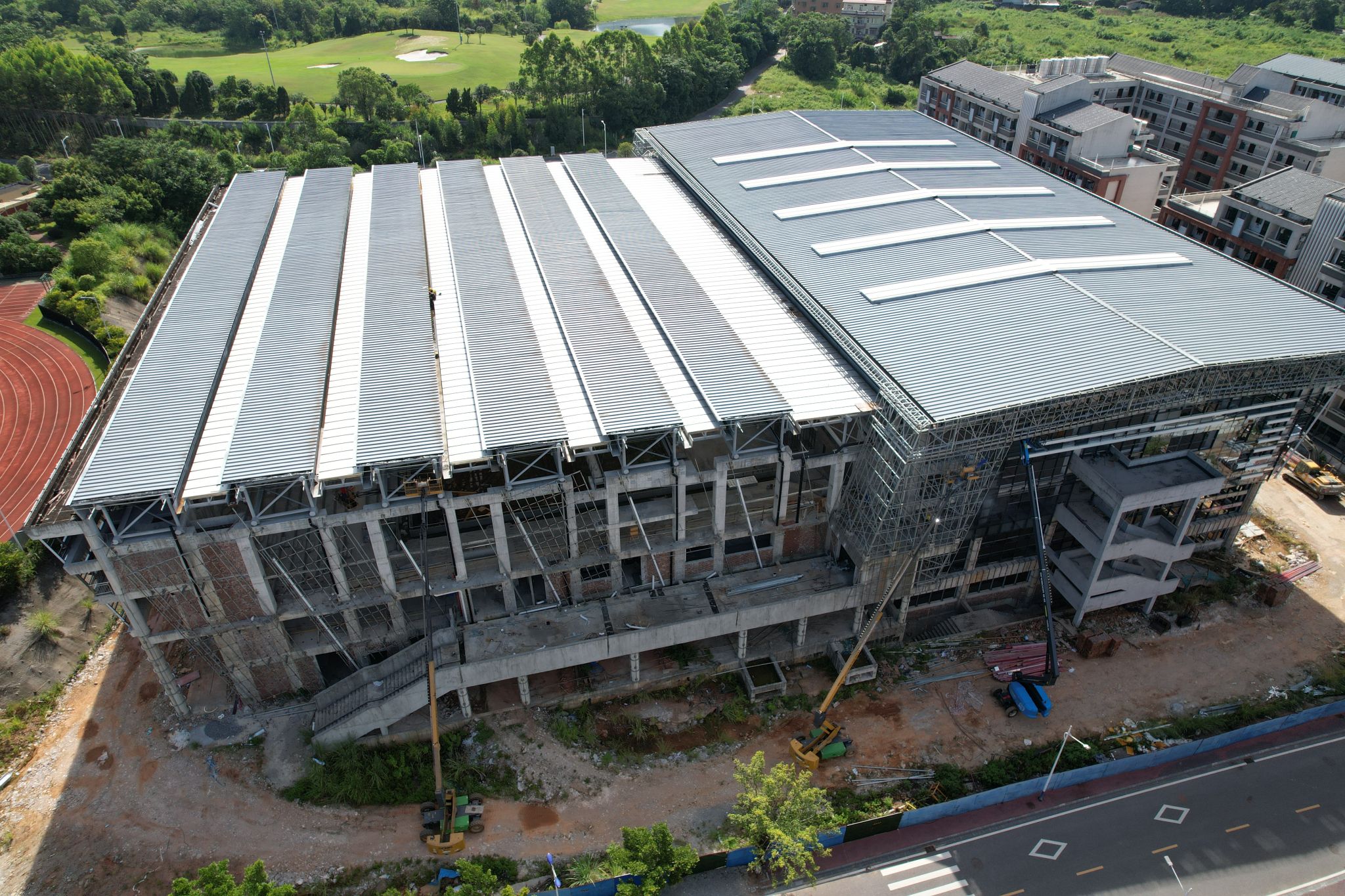PA官方网站综合体育馆工程2025年8月份形象进度:外墙一体化板龙骨施工完成90%;不锈钢室内栏杆施工完成;A区1、2层消防管安装完成;消防水泵房主机安装完成;消防强排风管安装完成90%;包梁、包柱施工完成50%;水电工程排水管安装完成80%;浮云吊顶A区2层安装完成;外墙铝单板线条安装完成70%。